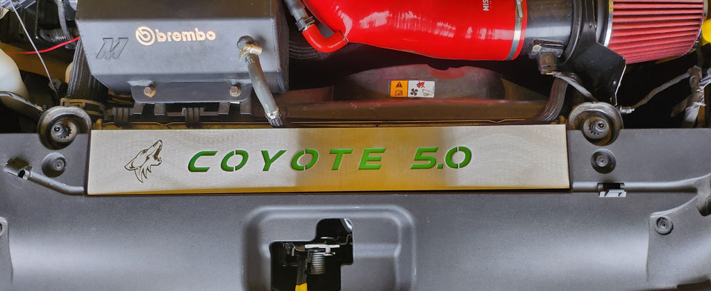 Our Radiator Cover Vanity Plate Kits are made of a dual plate design featuring a colour Base Plate and a Brushed Stainless Steel Finish with laser cut lettering and logo engraved options. Our Kits are available in 2 sizes, one for the Mustang 2015-17 FM and the 2018-23 FN. The kit is self-assembly and self install kit, however we DO include 'Loctite 18ml Extreme No Drip Glue Gel ' to bond the two plates together with your Kit.