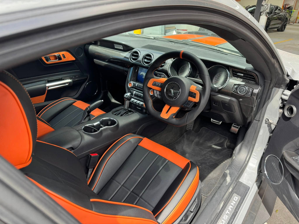 Expertly tailored to your specifications, our partner—an industry leader with over 15 years of experience—offers seat covers designed for an exact fit on 2015-23 Ford Mustangs. Made from premium Nappa Leather, this set includes covers for both front and rear seats. These cover maintain full functionality of airbags, heated, and ventilated seats. Available in your choice of style and colour, with optional Pony or Shelby logos.