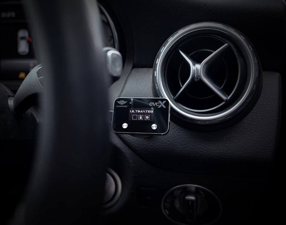 The evcX is easily installed by the at-home mechanic in less than 15 minutes; simply connect in-line between the factory plug and throttle pedal assembly. The evcX driver interface can be placed on the dash or console of the vehicle.